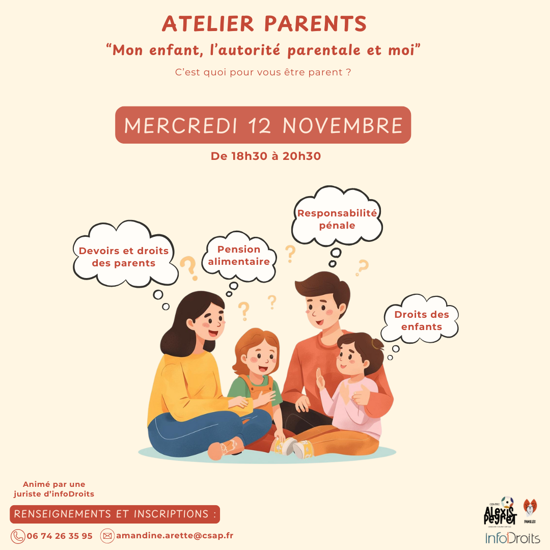 Atelier parents "Mon enfant, l'autorité parentale et moi"