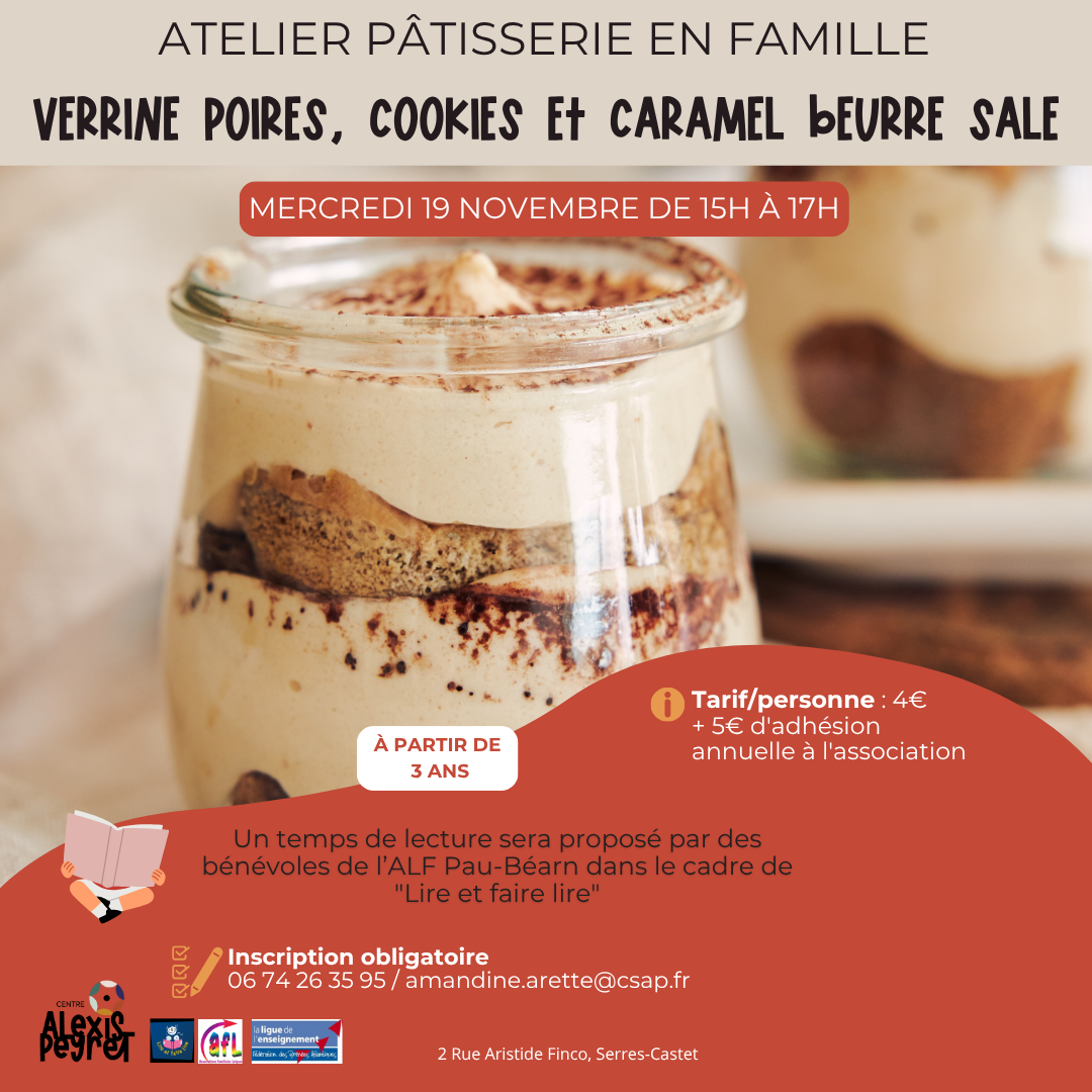 Atelier pâtisserie : verrine poires, cookies, caramel beurre salé